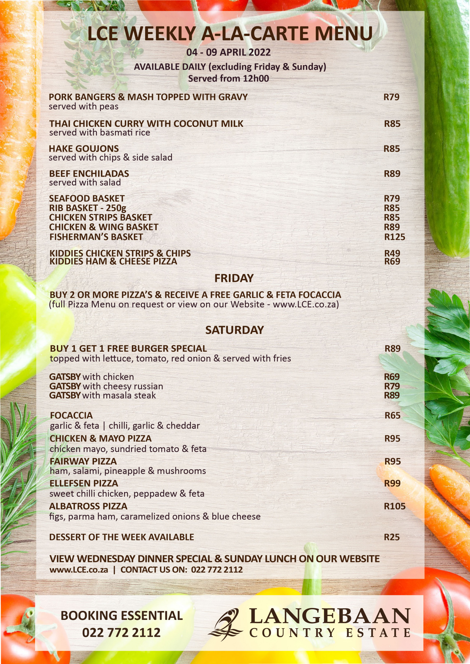 LCE Weekly A-La-Carte Menu