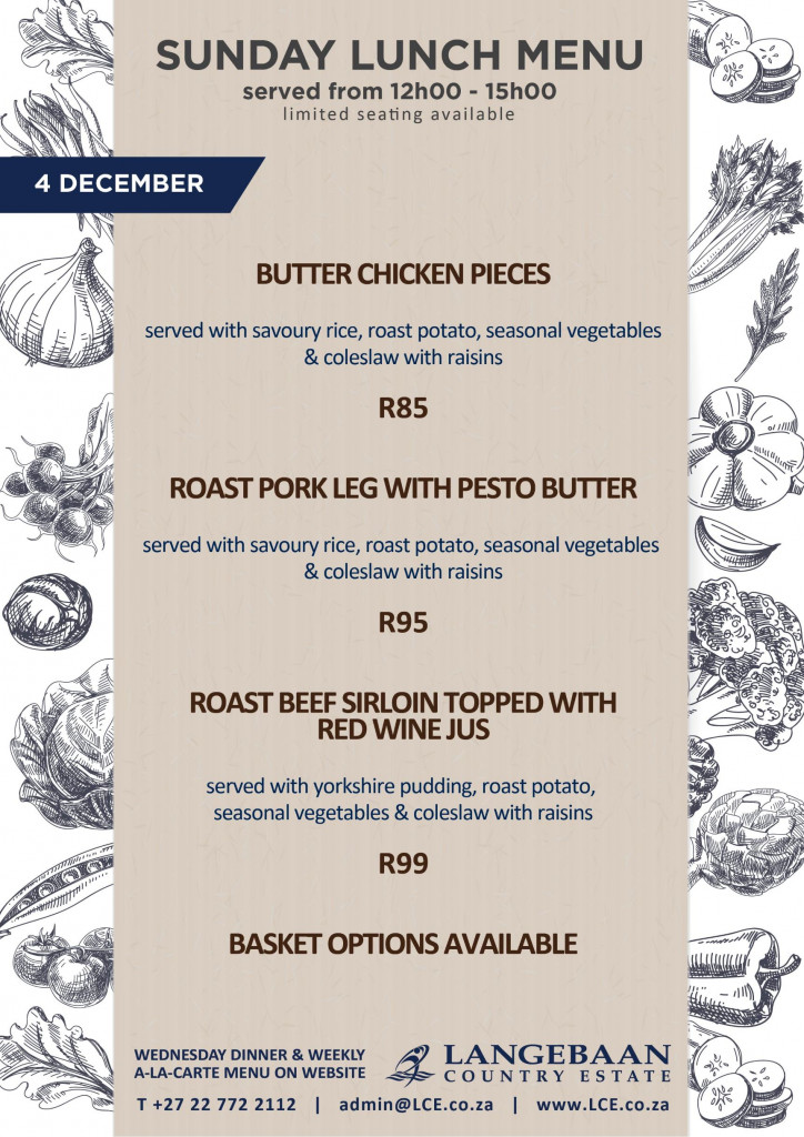 Sunday Lunch Menu