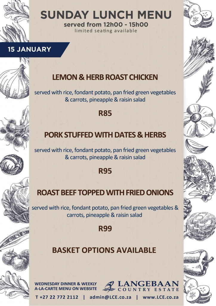Sunday LCE Breakfast Menu | Sunday Lunch Menu
