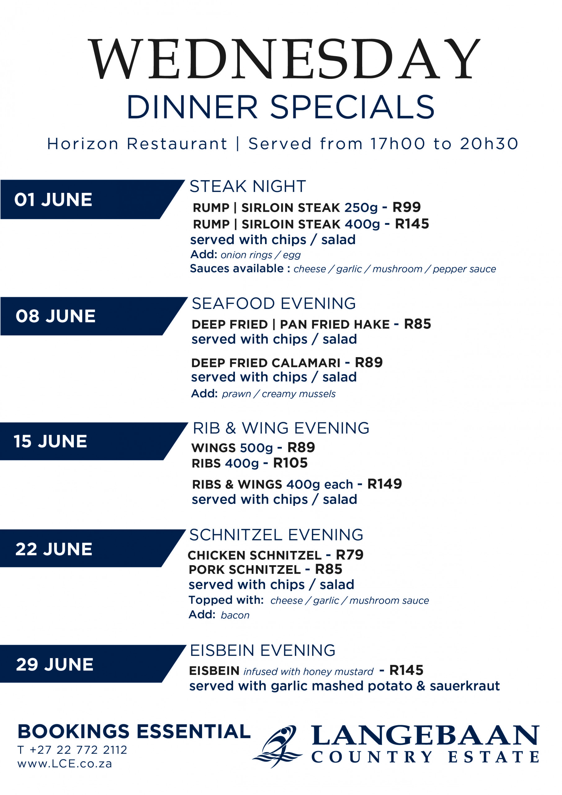 WEDNESDAY Dinner Specials