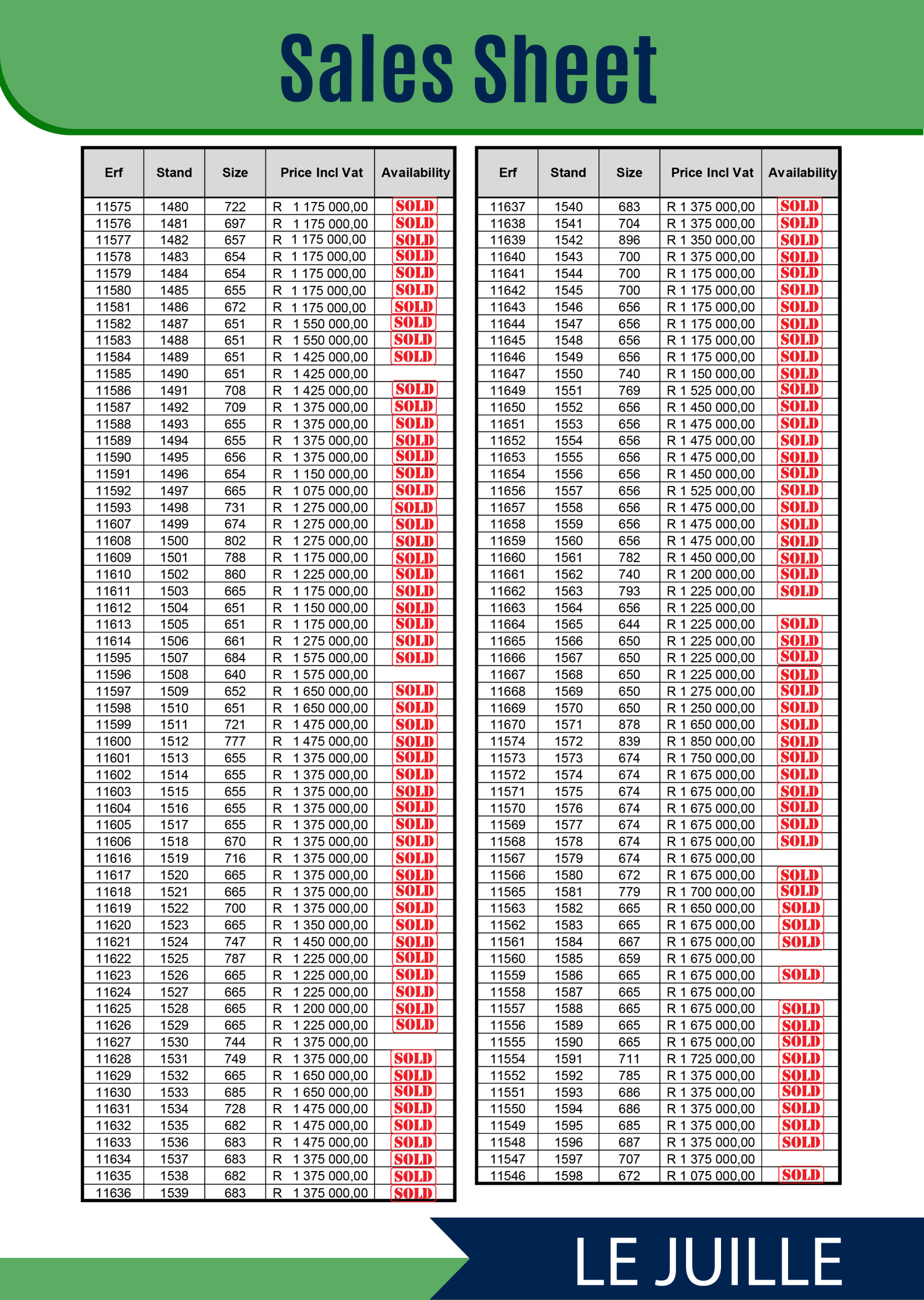 *Please note that updates to the Site Map and Sales Sheet occur periodically throughout the day,